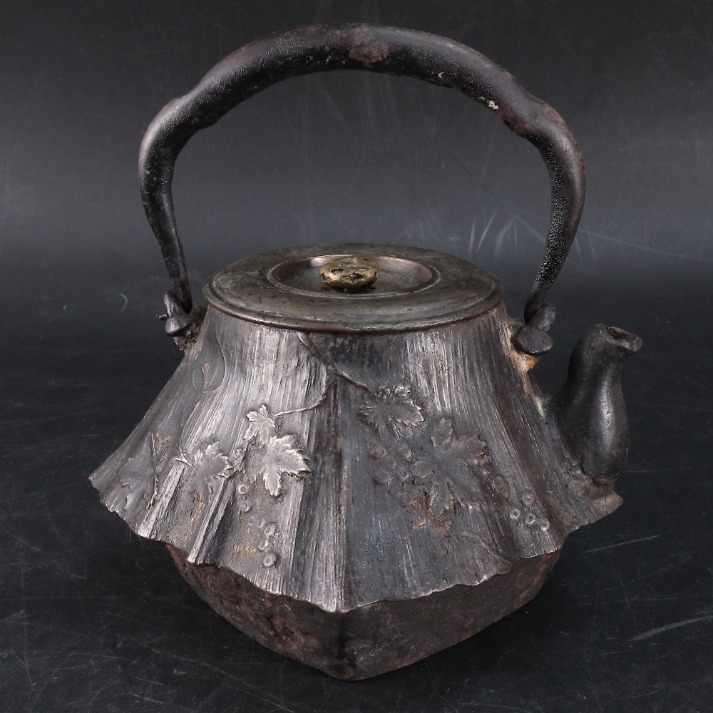- ◆◇金龍堂 末広葡萄文 小振り鉄瓶 1330g 茶道具 時代◇◆