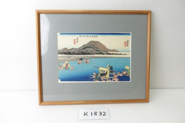 - 【k1832】真作 歌川広重 東海道五拾三次(東海道五十三次) 府中 安部川 木版画 浮世絵 松田寅蔵 椙木申次郎