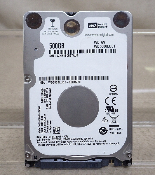 - Kネま2194 WD 2.5インチ SATA 内蔵HDD 500GB WD5000LUCT-63RC2Y0 パソコン周辺機器 PCパーツ ハードディスク