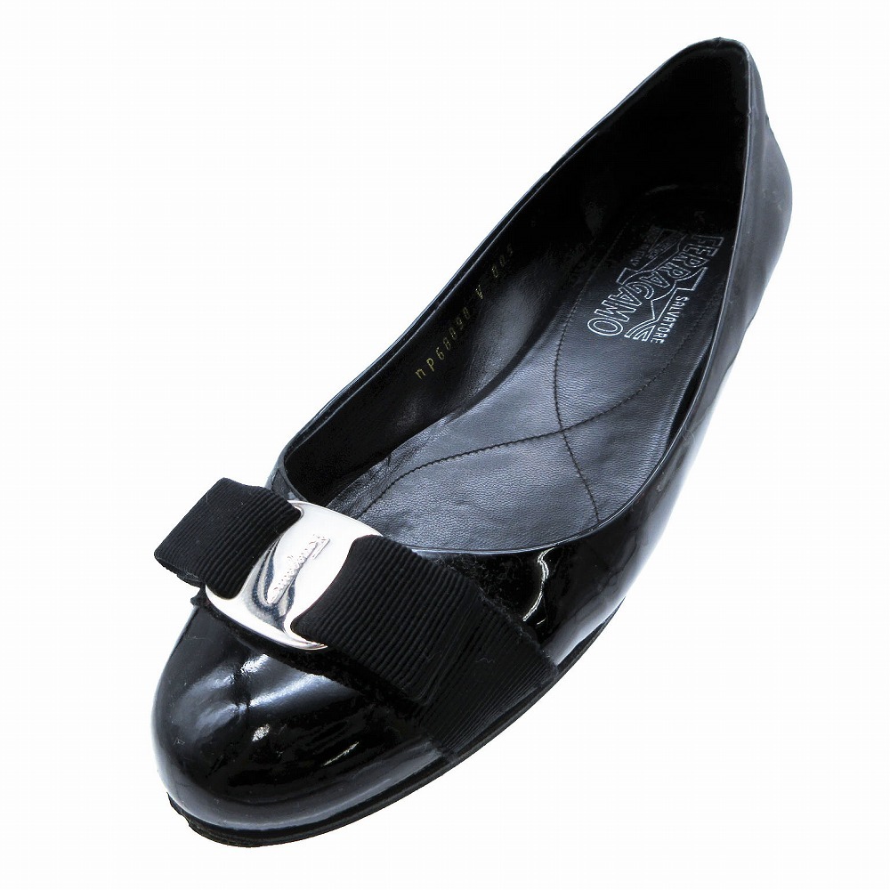 - フェラガモ Salvatore Ferragamo パンプス パテント レザー ヴィラ リボン フラット シューズ 靴 6 1/2 黒 レディース ur27 【中古】