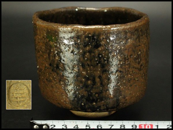 - 【銀閣】茶道具 うぐいす窯 瀬戸釉 筒茶碗 お稽古用 旧家蔵出 送料無料(A515)