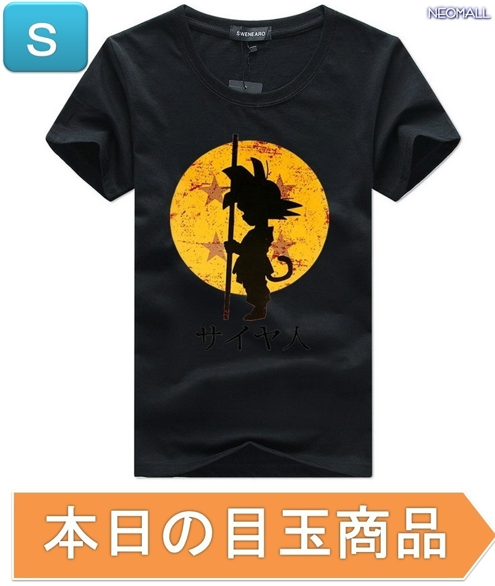 - 本日のお買得 ☆ 丸首 半袖 Tシャツ【344】 ブラック Sサイズ トップス シャツ シンプル イラスト シルエット 春夏