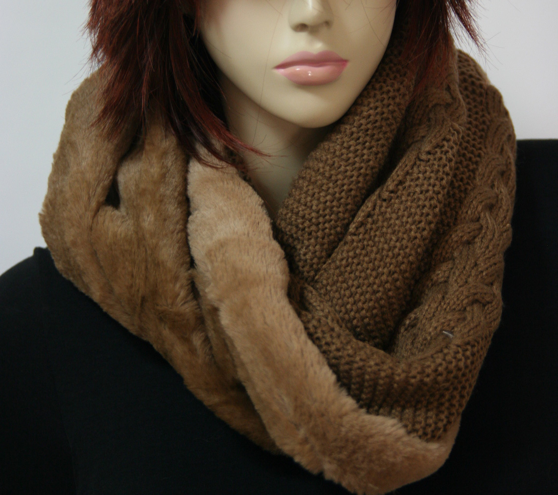 - 送料無料◆豪華絢爛◆ミンクタッチ◆防寒対策◆グラデーションボア◆首元お洒落◆ケーブル編み◆スヌード(ダークブラウン)6493