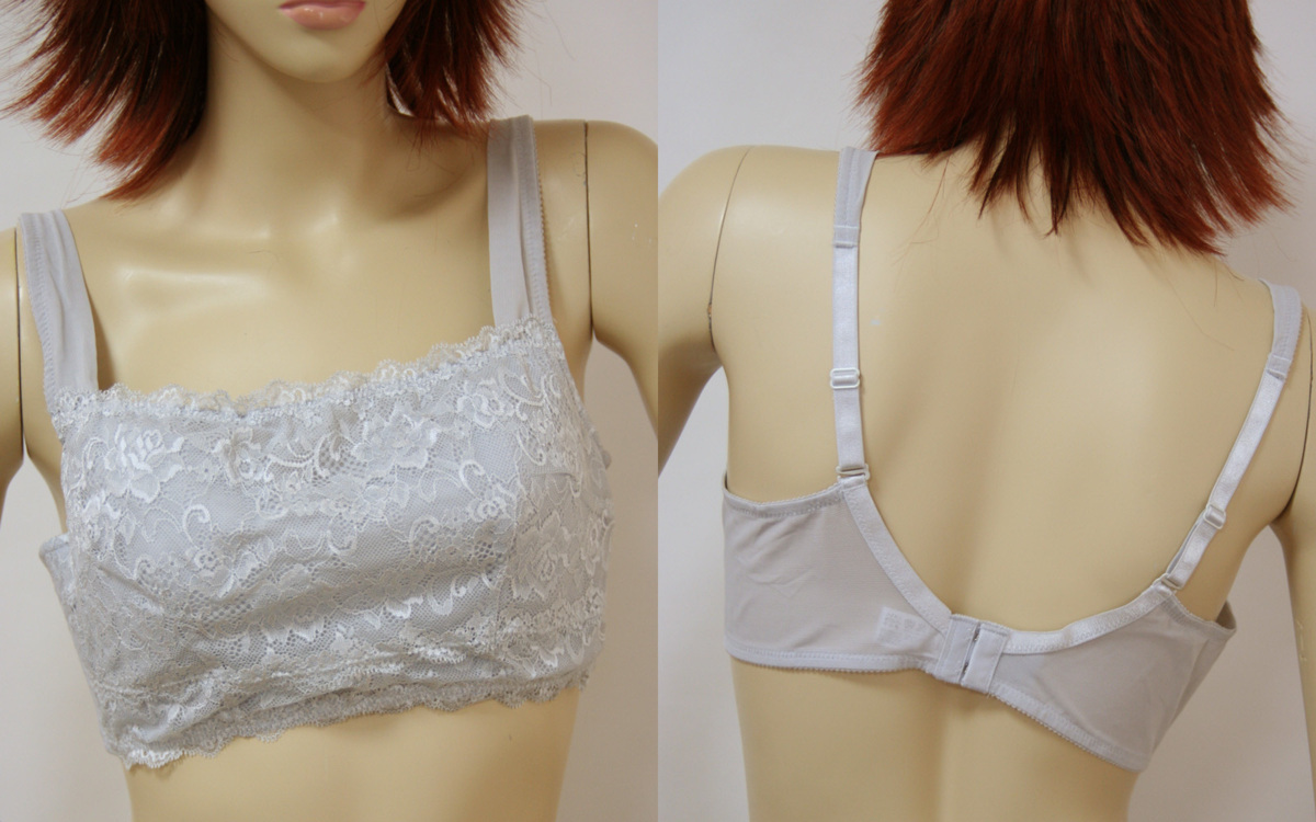 > 送料無料◆大きいサイズ◆すっぽりカバー◆チューブトップ風◆脇高パターン◆総レースブラジャー(B/90/グレー)86269