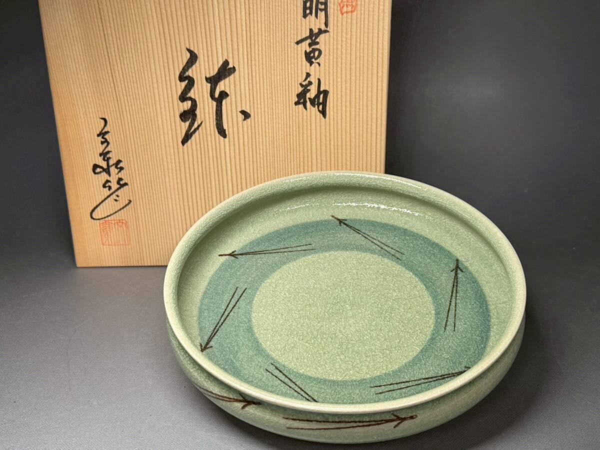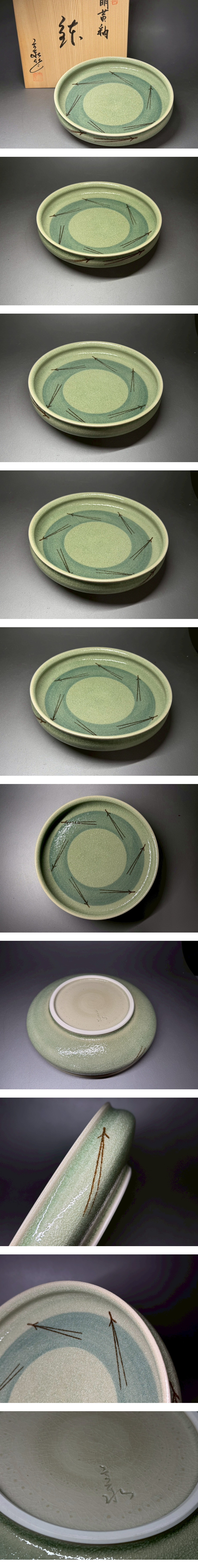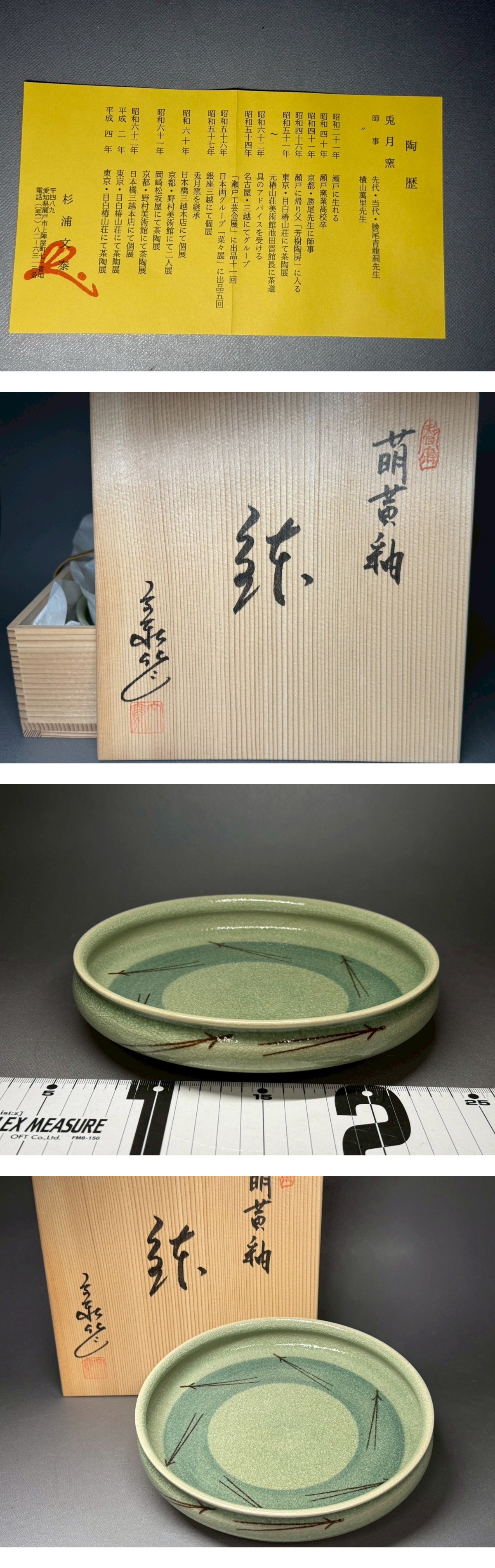 > 兎月窯 杉浦文泰造 菓子器 萌黄釉 陶器 骨董 置物 飾物 日本伝統工芸品 芸術 古美術 時代物 作家 在銘 落款 食器 和 茶道具 華道具65