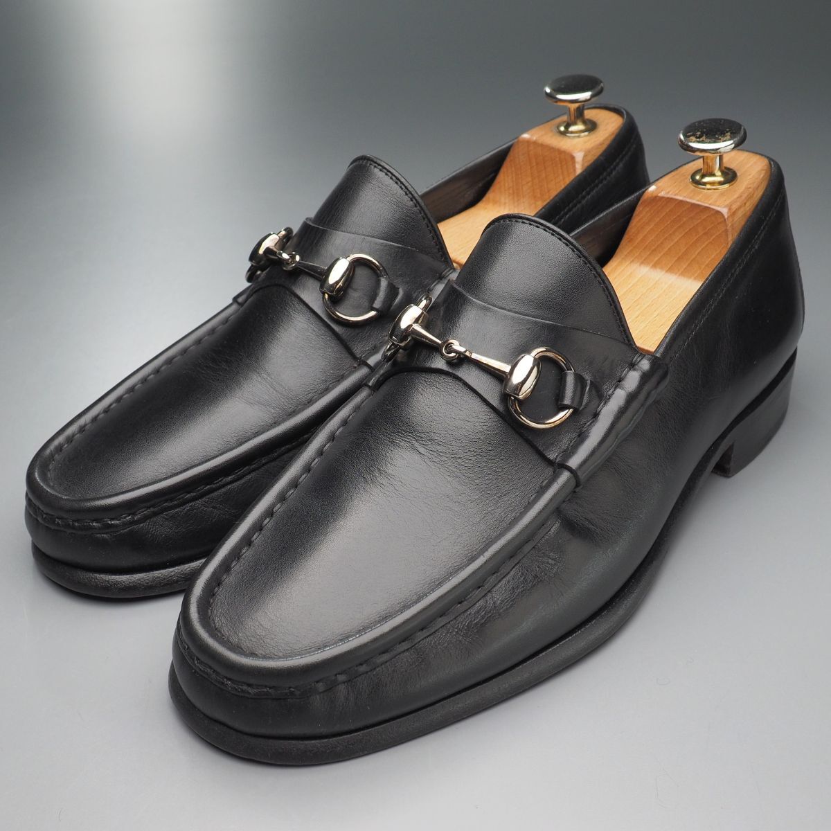 - GS5495//イタリア製*グッチ/GUCCI*メンズ40.5EJ/ホースビットローファー/レザースリッポン/革靴/黒/ブラック