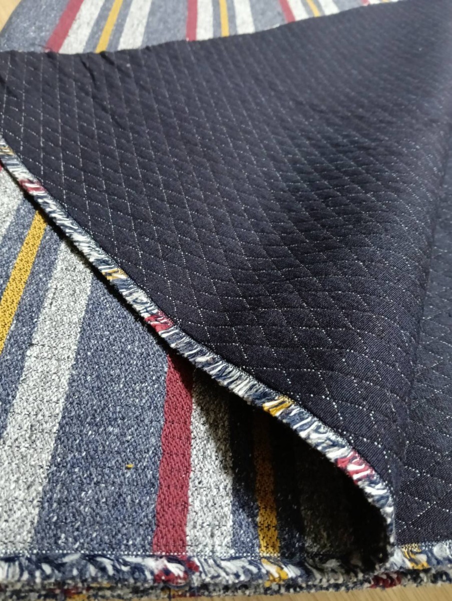 - 産地 岡山県 倉敷 キルティング風インディゴデニム裏ボーダー 147cm幅13.4oz 2mカット 生地 日本製 国産 井原