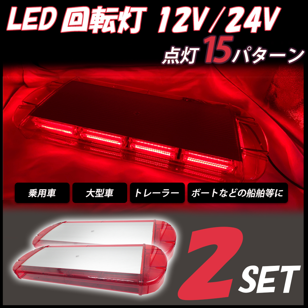 > LED 回転灯 2個セット 12V 24V 赤 大型 54cm パトランプ レッド シガーソケット 取り付け フラッシュ 緊急車 レッカー 警告灯 作業灯 車