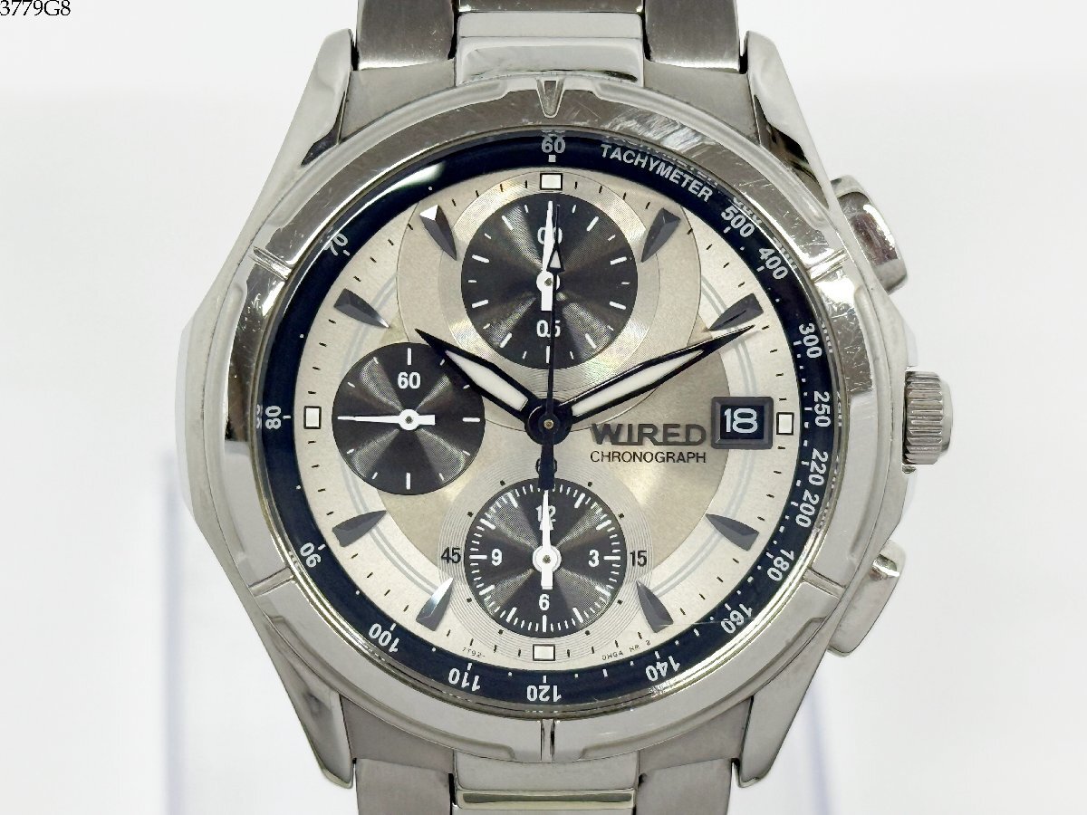 - 稼働品 SEIKO セイコー WLRED ワイアード 7T92-0GB0 クォーツ デイト クロノグラフ メンズ 腕時計 純正ベルト 電池交換済 3779G8-18
