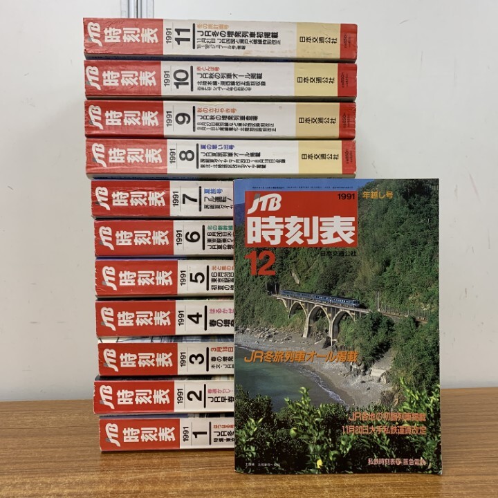 > ■01)【1点限り!】JTB時刻表 1991年 全12冊揃いセット/日本交通公社/鉄道/電車/JR/列車/改正ダイヤ/B