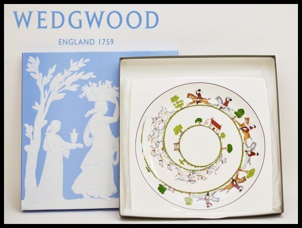 > 未使用 WEDGWOOD スクエアプレート 大皿 プレート 盛皿 ハンティングシーン 獲物を追いかける狩人と猟犬 ウェッジウッド