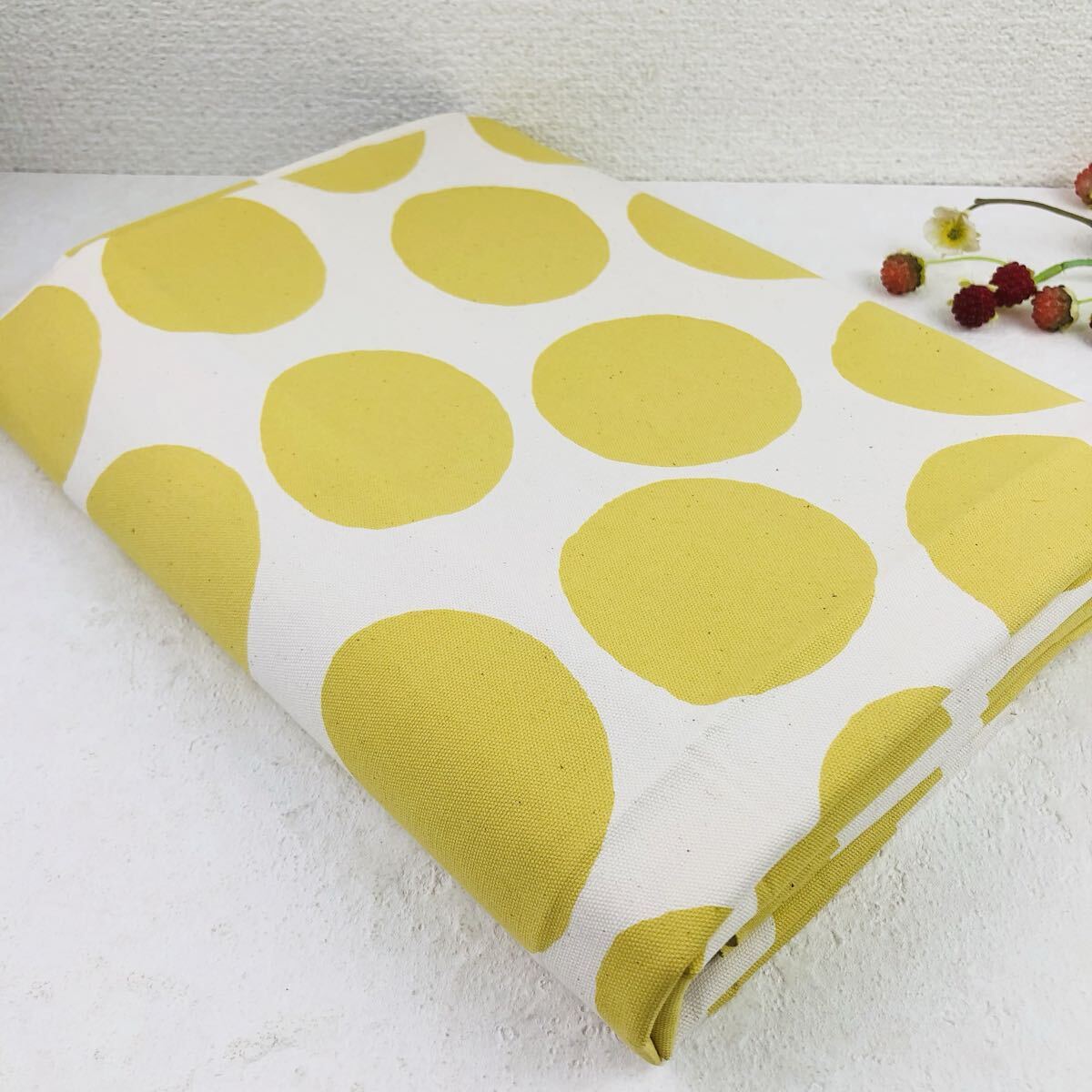 - 1m 日本製 北欧 ドット 水玉 コットン オックス 生地 はぎれ コットン 110×100 大きなまる からし