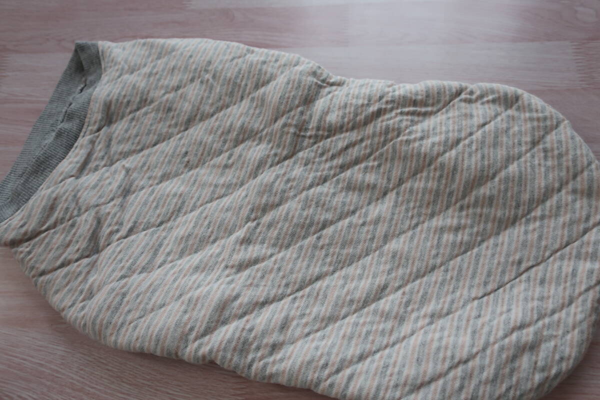 > 【L・中古】秋冬 小型犬 中型犬 犬服 ドッグウエア ハンドメイド 防寒 ボーダー グレー