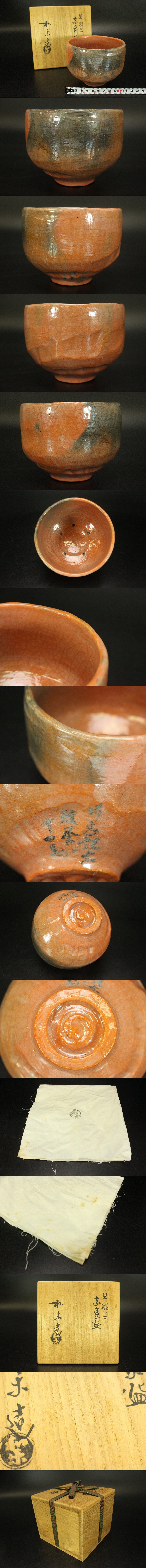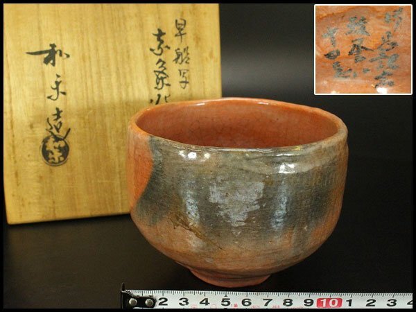 - 【銀閣】茶道具 早船写赤楽茶碗 和楽造 共箱 旧家蔵出 送料無料(P116)