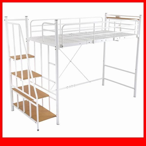 > ロフトベッド★新品/大人かわいいインテリア 階段付き パイプロフトベッド/2段階高さ調整 ハイ ミドル 宮 コンセント付/ホワイト/a6