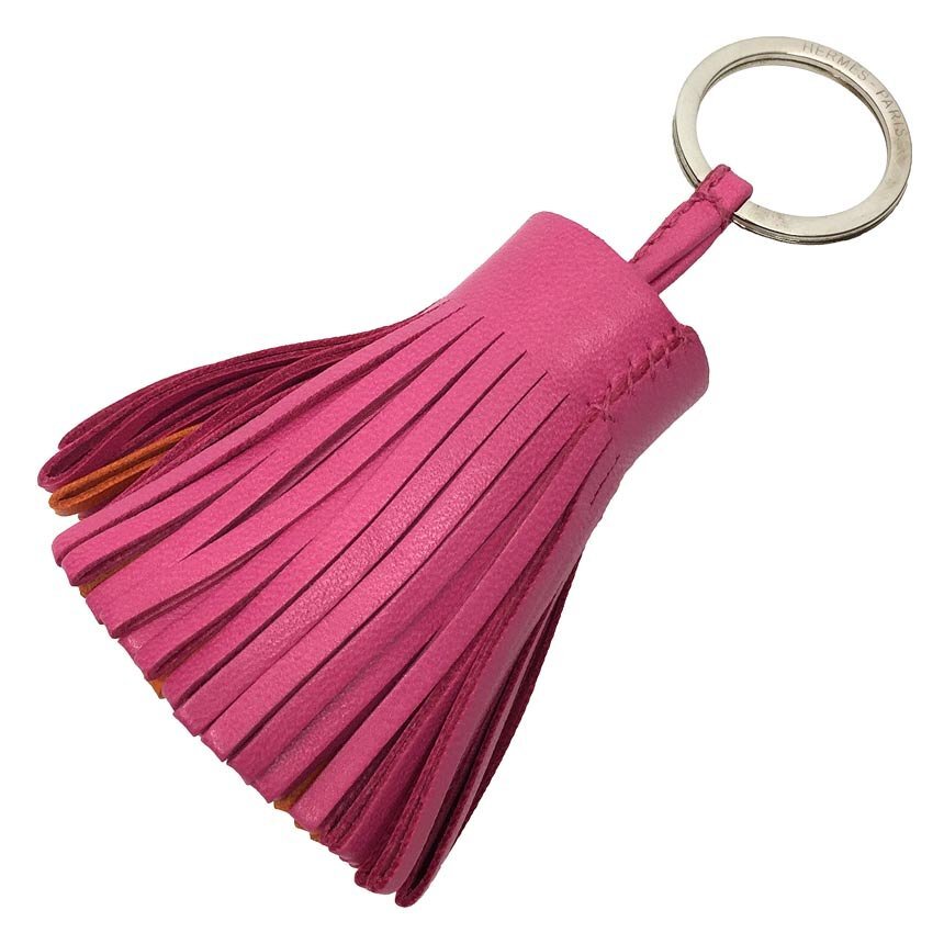 - HERMES エルメス カルメン キーホルダー キーリング チャーム フリンジ バイカラー レザー ピンク オレンジ 美品 送料無料 aq10673