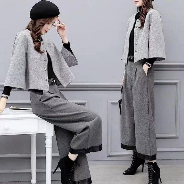 - セットアップ 上下セット レディース 無地 アウター ジャケット ワイドパンツ ガウチョ カジュアル 体型カバー 通勤 秋冬 2XL