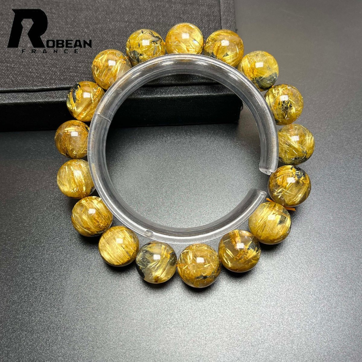 - 綺麗EU製 定価88万円★ROBEAN・太陽花タイチンルチル★黄金針水晶 金運 開運 ゴールド ブレスレット パワーストーン 12.9-13.8mm K1117236