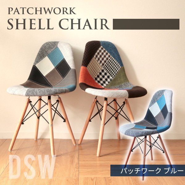 - 新品未使用 イームズチェア パッチワーク柄 リプロダクト DSW eames ダイニング シェル チェア 椅子 北欧風 おしゃれ スツール 青