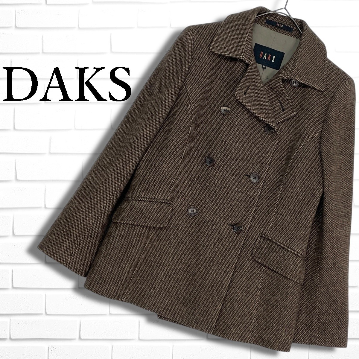 - ◆良品◆ DAKS ダックス カシミヤ アンゴラ ブレンド ウール ショート コート ジャケット ベージュ × 茶 ブラウン レディース 40 3775K◇