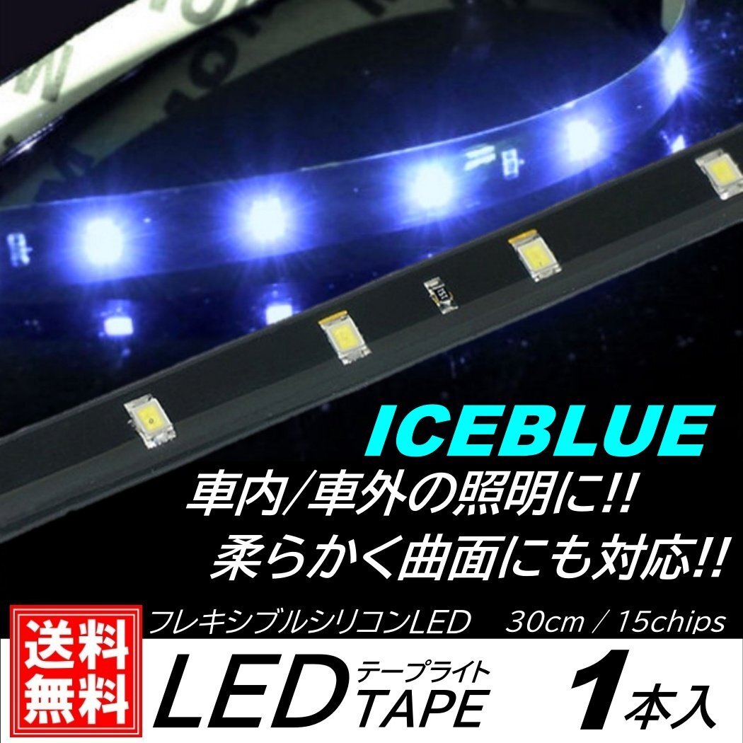 - アイスブルー LEDテープライト 防水仕様 30cm 15SMD カット可能 正面発光 発光色選択 ブラックベース LEDイルミネーション 1本入 デイライ