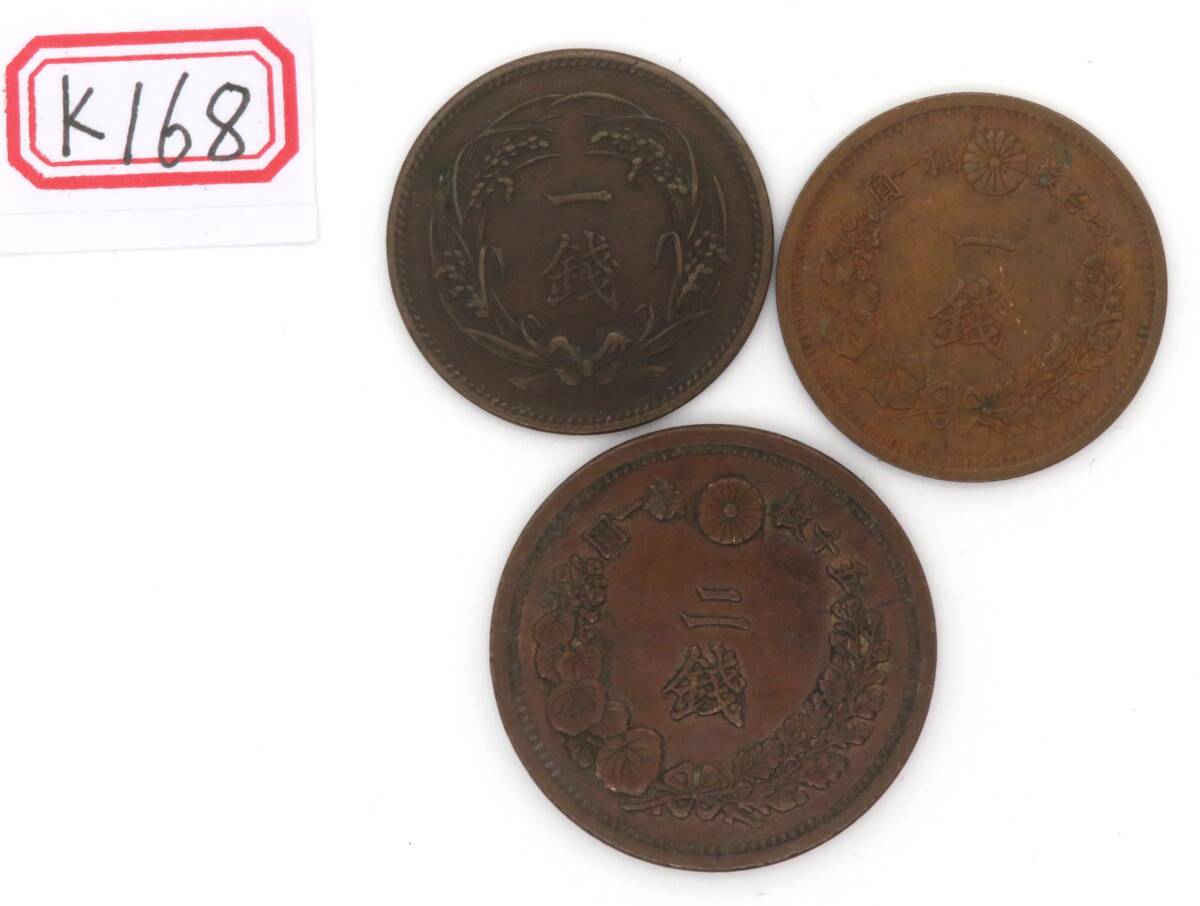 - K168、日本硬貨、一銭 二銭 旭日 竜 まとめ3枚 硬貨 記念硬貨 古銭 通貨