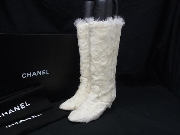 - 1円 ■美品■ CHANEL シャネル ココマーク ファー ロングブーツ 表記サイズ 36 1/2(約23.5cm) 靴 シューズ アイボリー系 FS7547