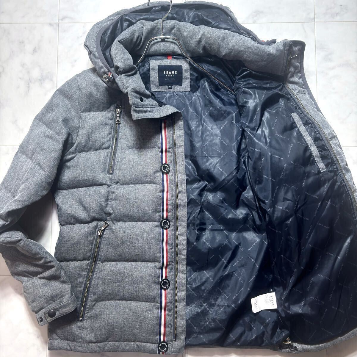 - BEAMS HEART ダウンジャケット ブルゾン●キルティング トリコロール ドローコード フード着脱 極暖 秋冬 グレー メンズ ビームスハート