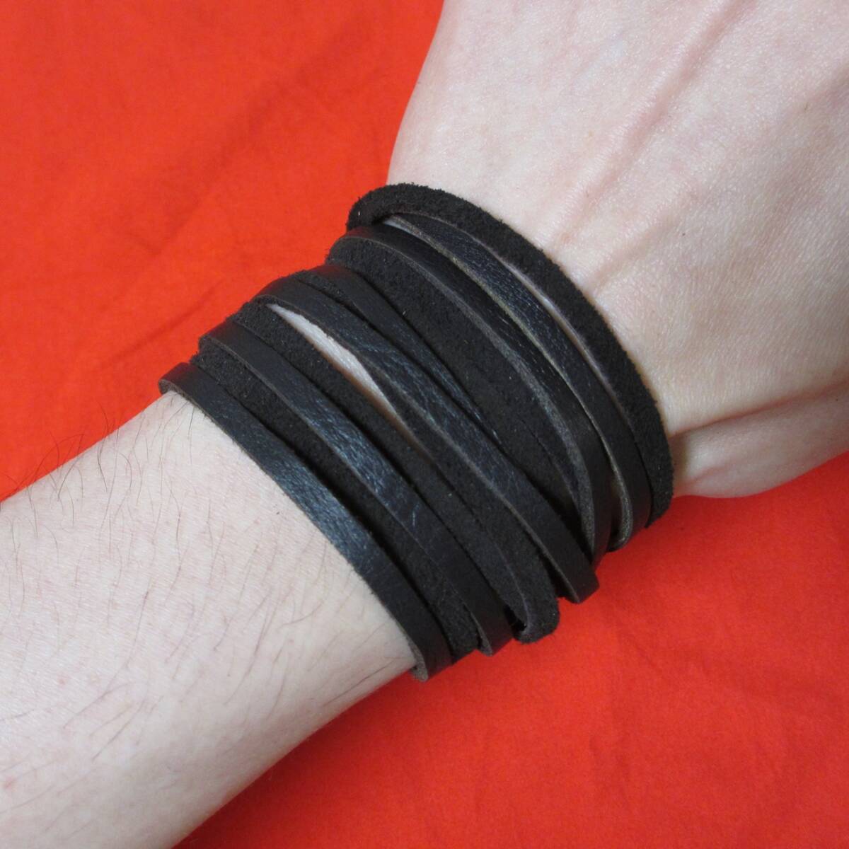 - ビンテージブラック レイヤード レザー ブレスレット ディアスキン ナンバーナイン 本革 バングル julius wizzard entire studios