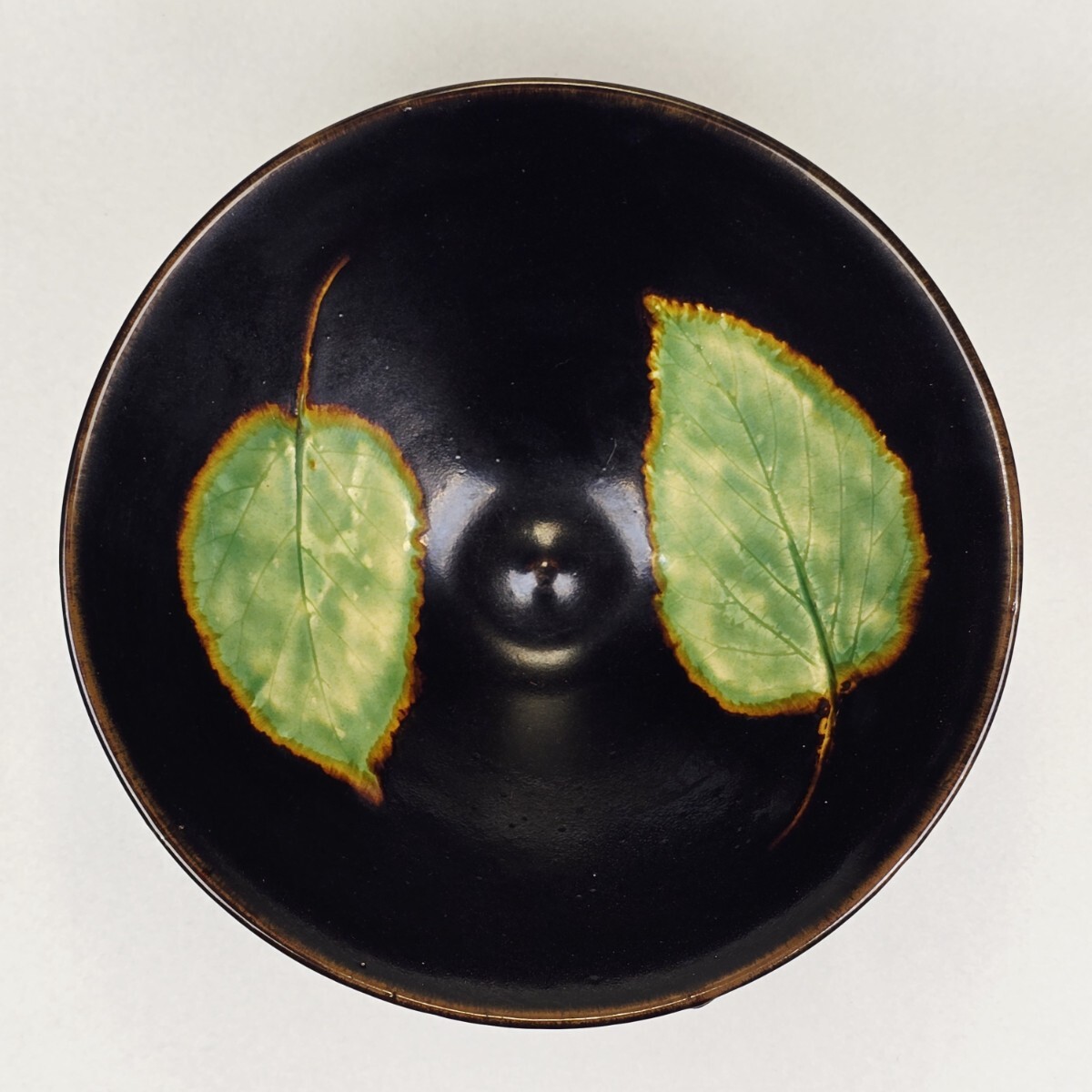 - 古茶道具 中国古磁 吉州窯 黒釉 木の葉紋 鬪笠碗 茶碗 美品
