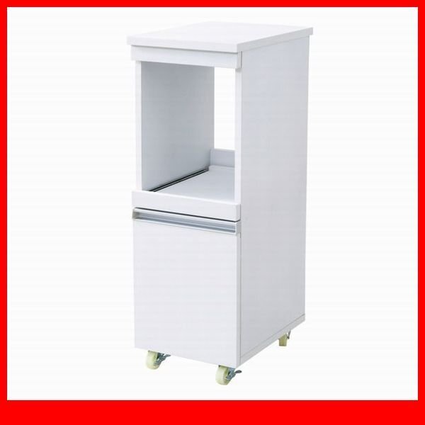 - 家電ラック★新品/キッチン収納 家電ラック ロータイプ/隙間家具 幅30cm 食器棚 可動棚 コンセント キャンスター付き 背面化粧/ホワイト/a1