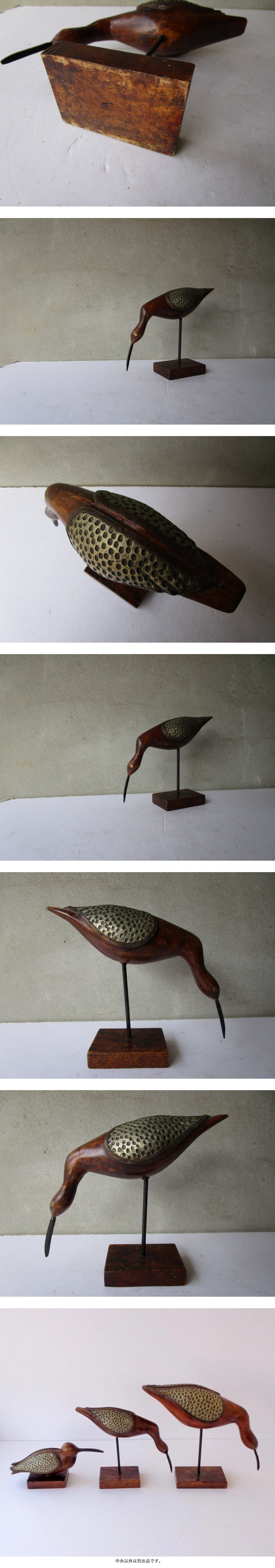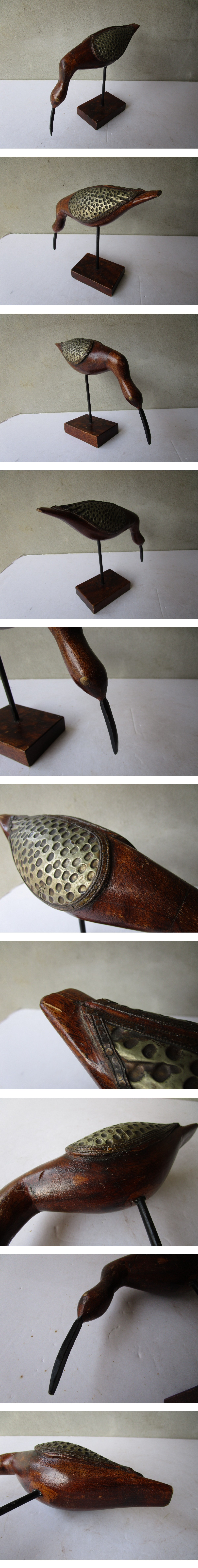 - 1960~70年代 イタリア 木+金属製の餌をついばむ鳥のオブジェ 21cmH ハンドカーヴィング/アーツ アンド クラフツ/イームズ/ウェグナー