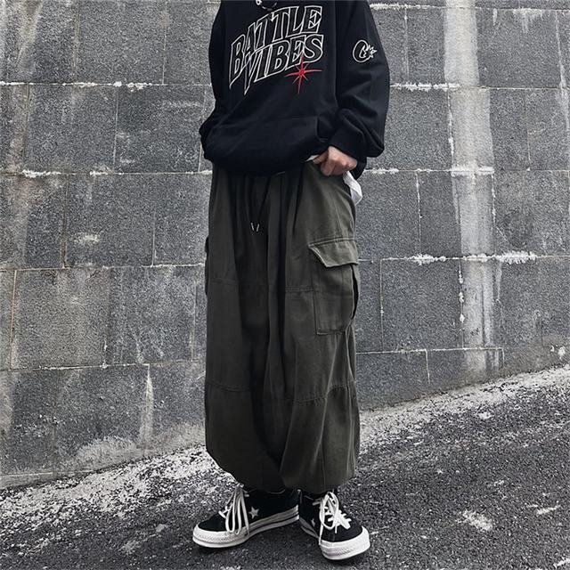- カーゴパンツ 作業着 ワイド ダンスパンツ ワークパンツ カジュアルパンツ メンズ ボトムス ロング ゆったり グリーン L