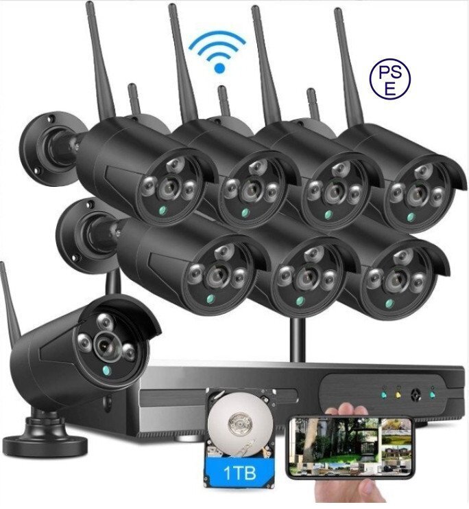 - 最新モデル*防犯カメラセット8台カメラ 500万画素 屋外IP66防水 遠隔監視&動体検知 暗視撮影 AHDセット ハードディスク付き