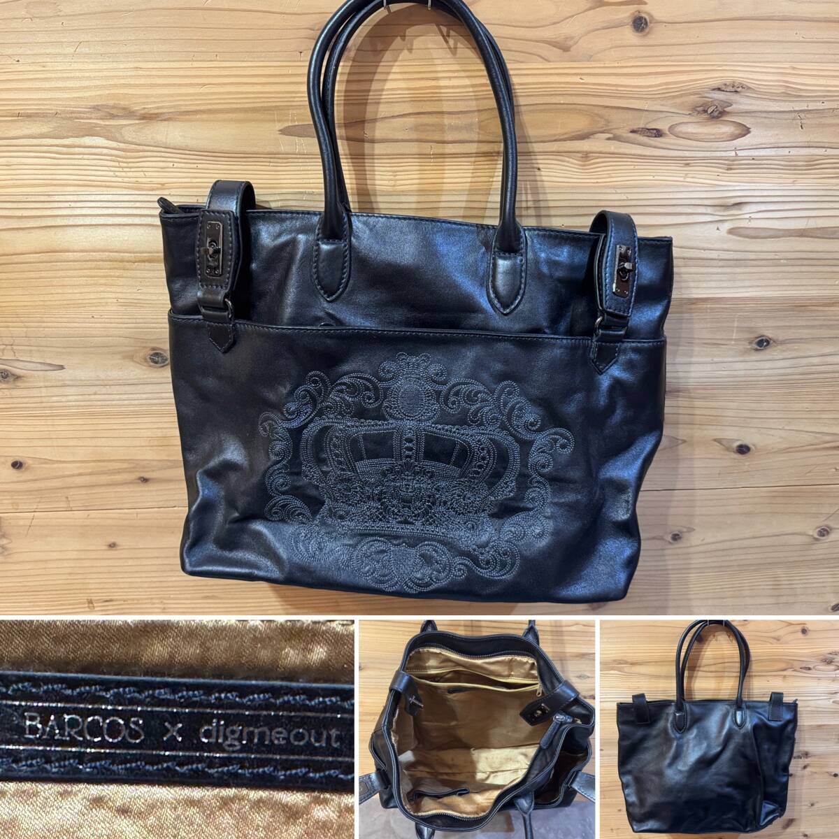 - ☆ BARCOS×digmeout バルコスxディグミアウト☆大谷リュウジ トートバッグ 刺繍 ハンドバッグ レザー 黒 ブラック 肩掛け☆