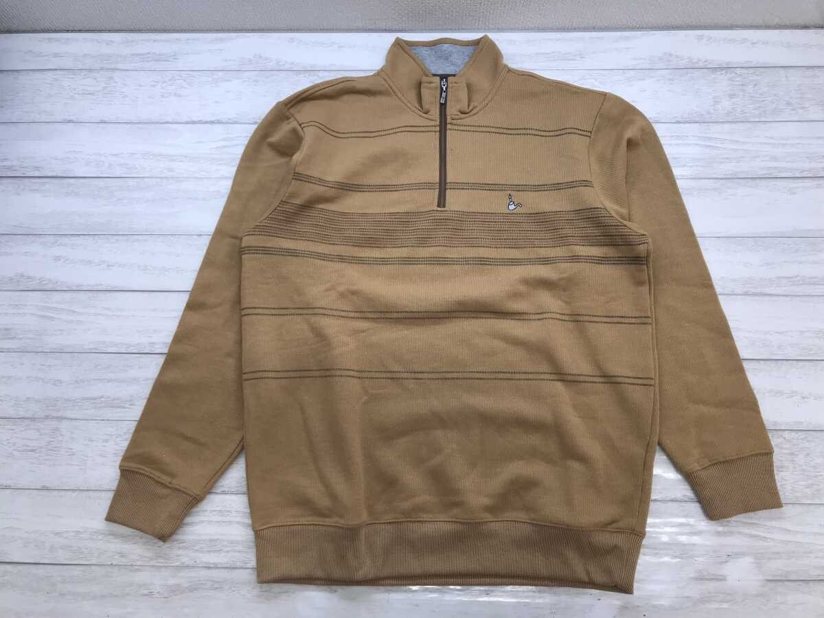 - トロイ TOROY レトロ オールド トラッド パターンボーダー ハーフジップ ハイネック トレーナー メンズ 裏起毛 XL キャメル