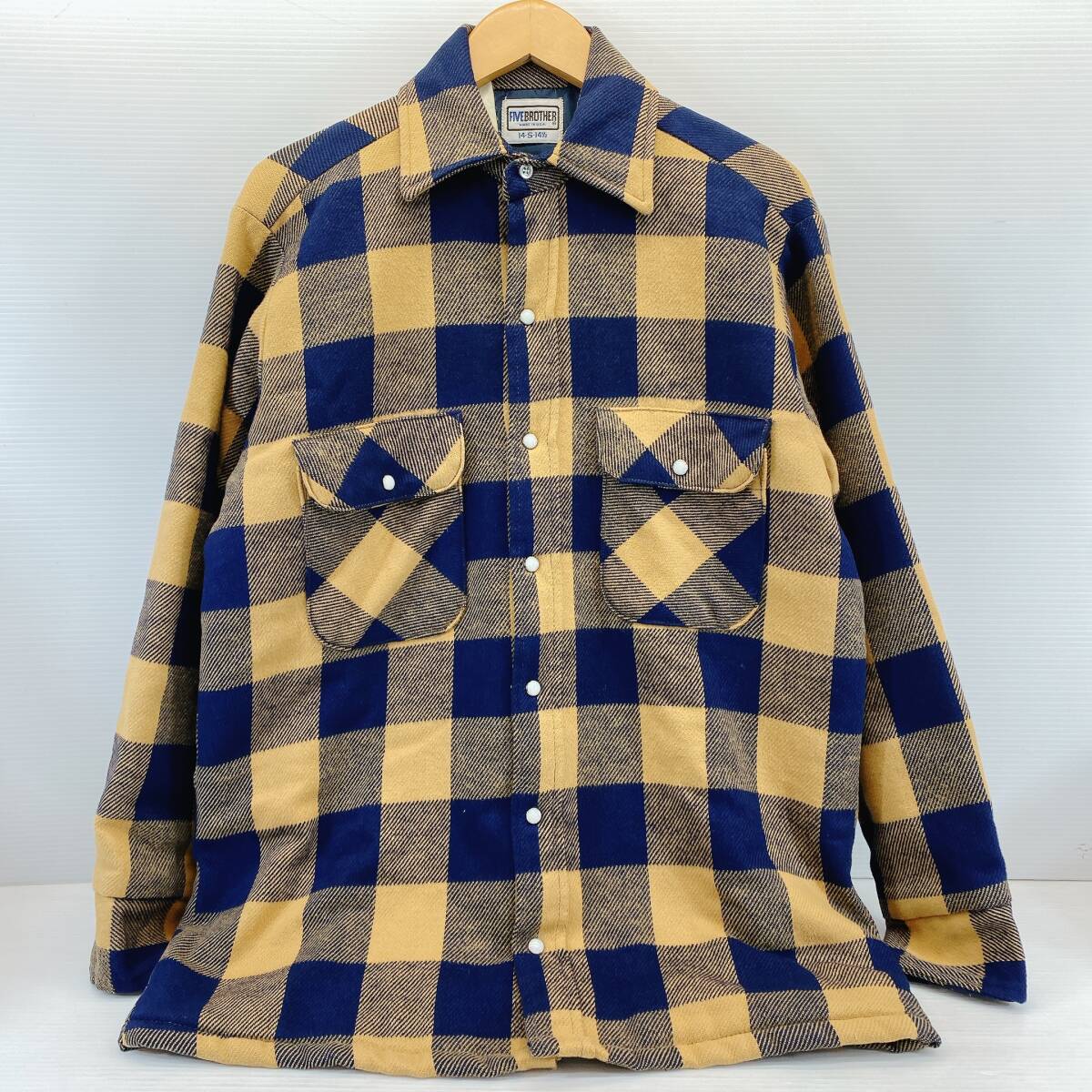 - ● FIVEBROTHER 80s ネル ブロック チェック シャツジャケット MADE IN USA キルティング ライナー ネイビー×キャメル ファイブブラザー