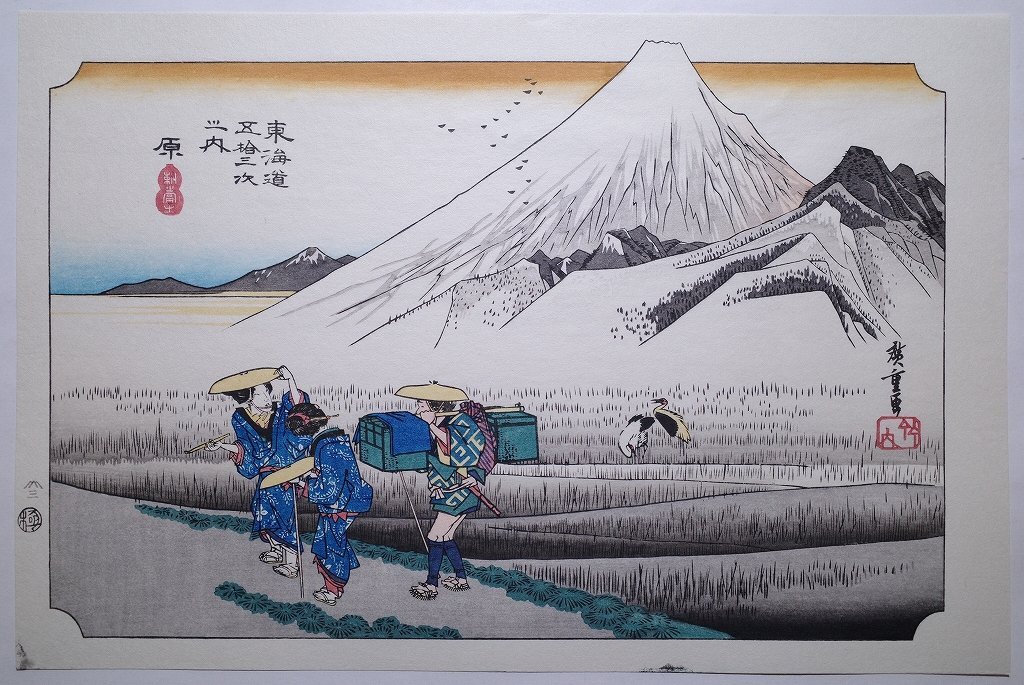 > 歌川広重【東海道五拾三次之内 原 朝之富士】■浮世絵 富士山 名所絵 木版画 摺物 古書 和本 Hiroshige Ukiyoe
