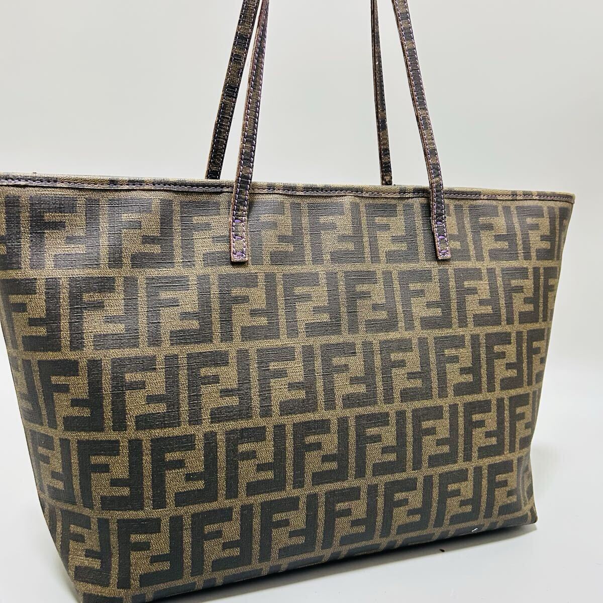 - 1円 FENDI フェンディズッカ柄 PVC トートバッグハンドバッグ 肩掛けかばん レディース ブラウン系