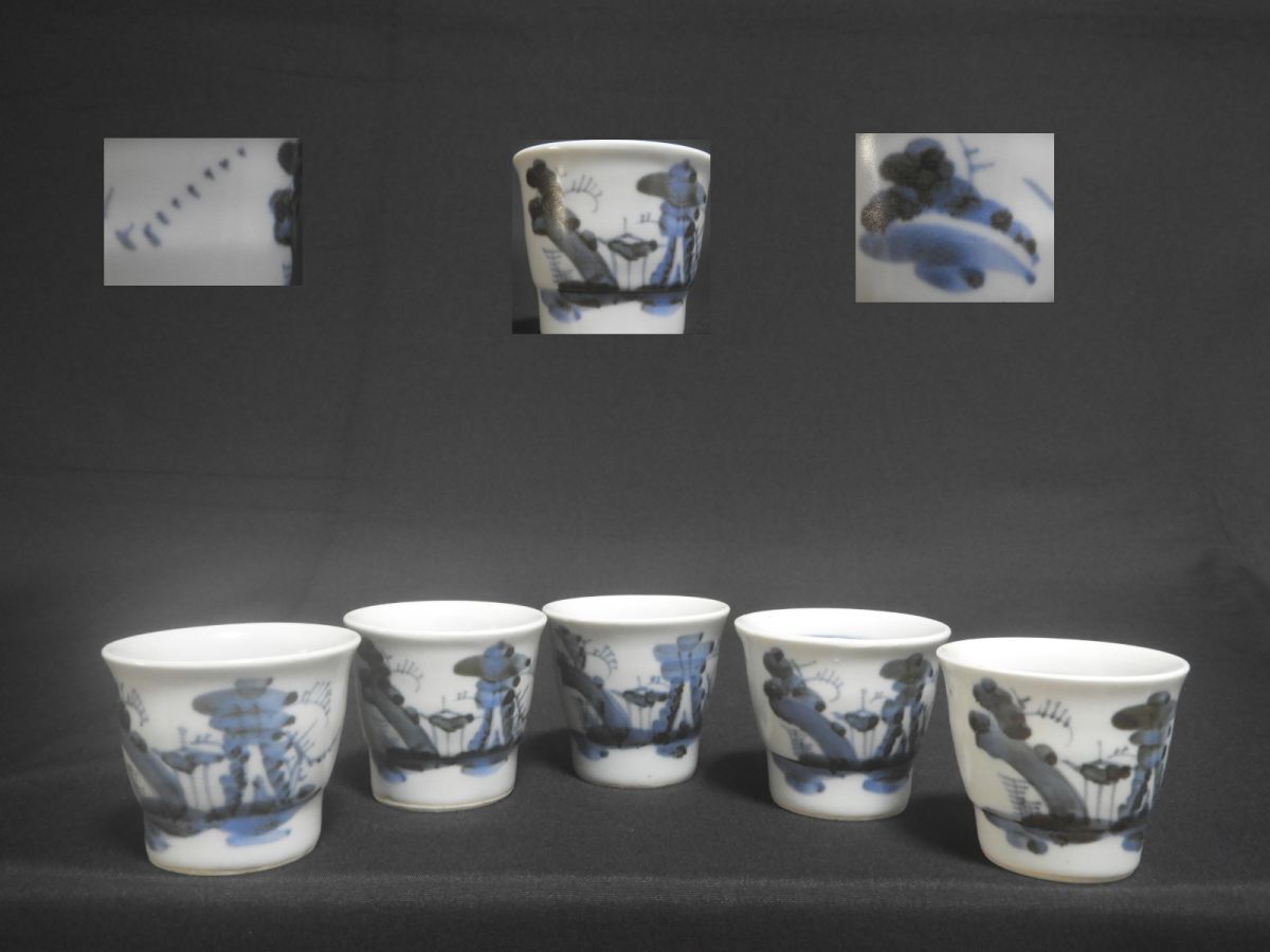 - 煎茶碗 覗き御猪口 煎茶道具 酒器 染付山水画 【送料無料】