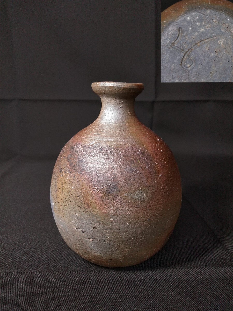 - 備前焼 酒器 徳利 陶印 窯変 銚子 酒瓶 (検索) 工芸 陶芸 美術 会席 懐石 日本酒 酒道 コレクター チロリ 花器 瓶 壷 酒壺 古玩 道具 陶器