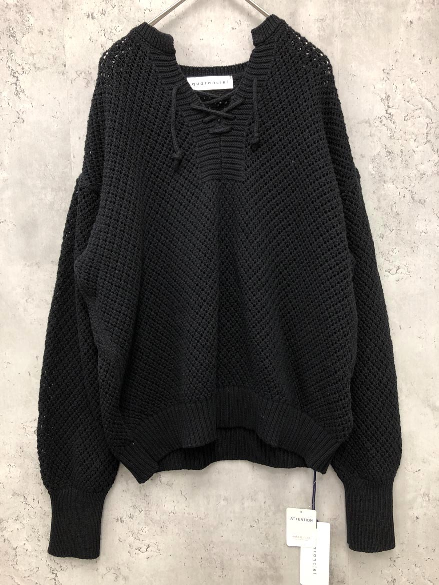 - 新品 quaranciel カランシエル シップス レースアップ 透かし ニット セーター sizeONE/黒 ■■◎ ☆ fkb4 レディース