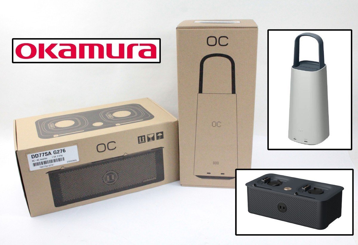 > [未使用品 2点セット] okamura オカムラ OC ポータブルバッテリー DC-ACインバーター HLB-ICL601 HLB-TRD322 ハンドルタイプ バッテリー