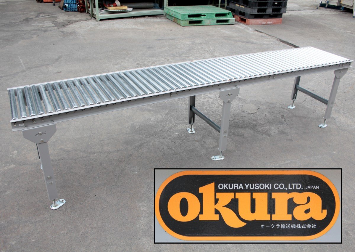 > オークラ輸送機 okura スチール製ローラコンベヤ コンベア QR型 全長3000mm 軽荷重小物用 ピッチ50 (3) [直接引取限定 福島県須賀川市]