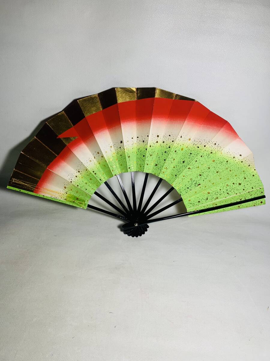 - 舞扇 扇子「金赤緑地金散し」r718 /日本舞踊 能楽 能扇 扇子 飾扇