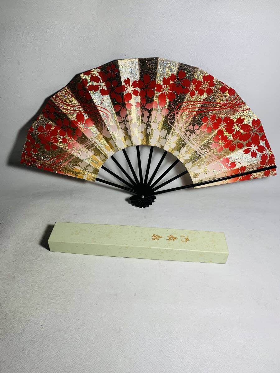 - 舞扇 扇子 「金散し赤桜」r730 /日本舞踊 能楽 能扇 扇子 飾扇