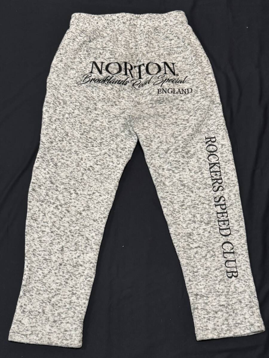 - NORTON メランジパンツ 杢 ニット スウェットパンツ 裏起毛 ノートン 刺繍ロゴ ハイデザイン 4ポケット ジッパー付き バイカー 石瀬7773