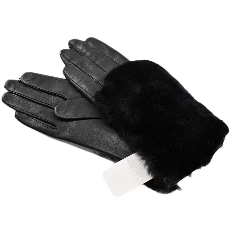 - ジル スチュアート 手袋 レディース ブランド ラムレザー ラビット ファー ブラック 20cm