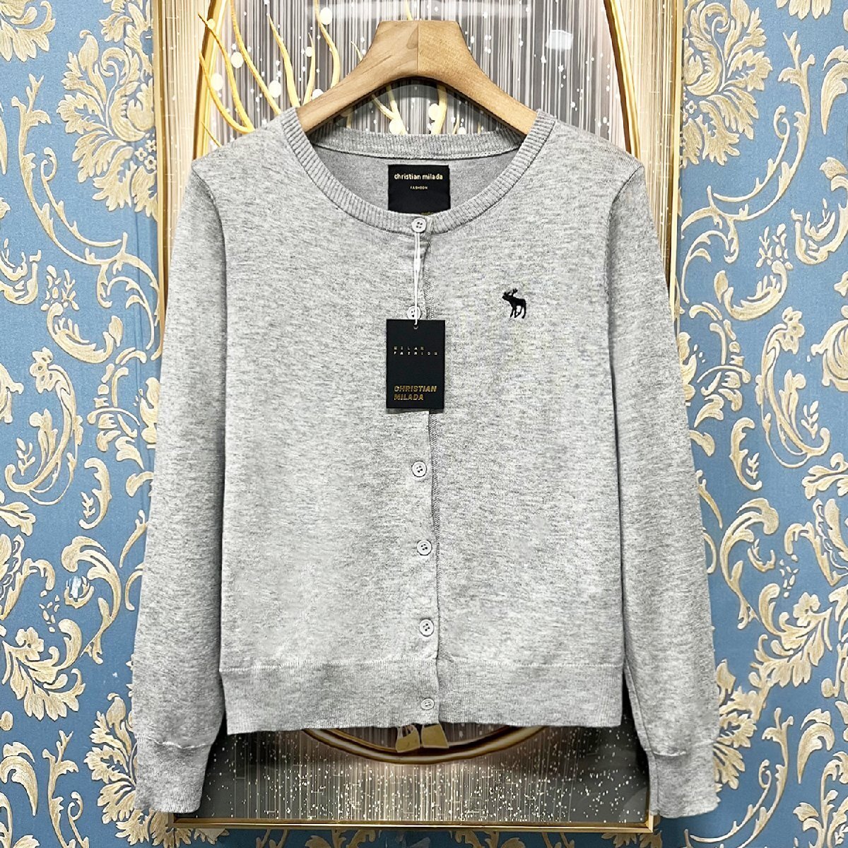 > 定価4万★christian milada・ミラノ発・カーディガン★ウール混 ニット 長袖 柔らか 定番 無地 刺繍 ショート丈 レディース 春秋 日常 S/34