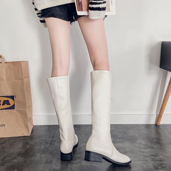 - 人気品ニーハイブーツ レディース ロング丈 スクエアトゥ ローヒール 合皮 レザー調 春秋冬 美脚 大人 23.5CM